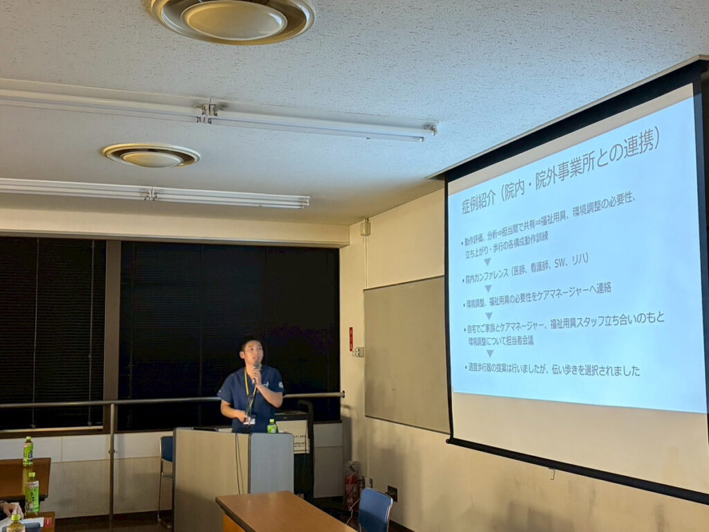 1つ目の演題では、訪問リハビリの実際の関わりと、リハビリを始めるタイミングについてお話しました。
